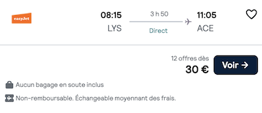 Depuis Lyon vers Lanzarote le 31 décembre :