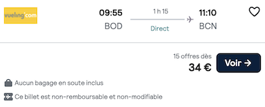 Depuis Bordeaux vers Barcelone le 31 décembre :