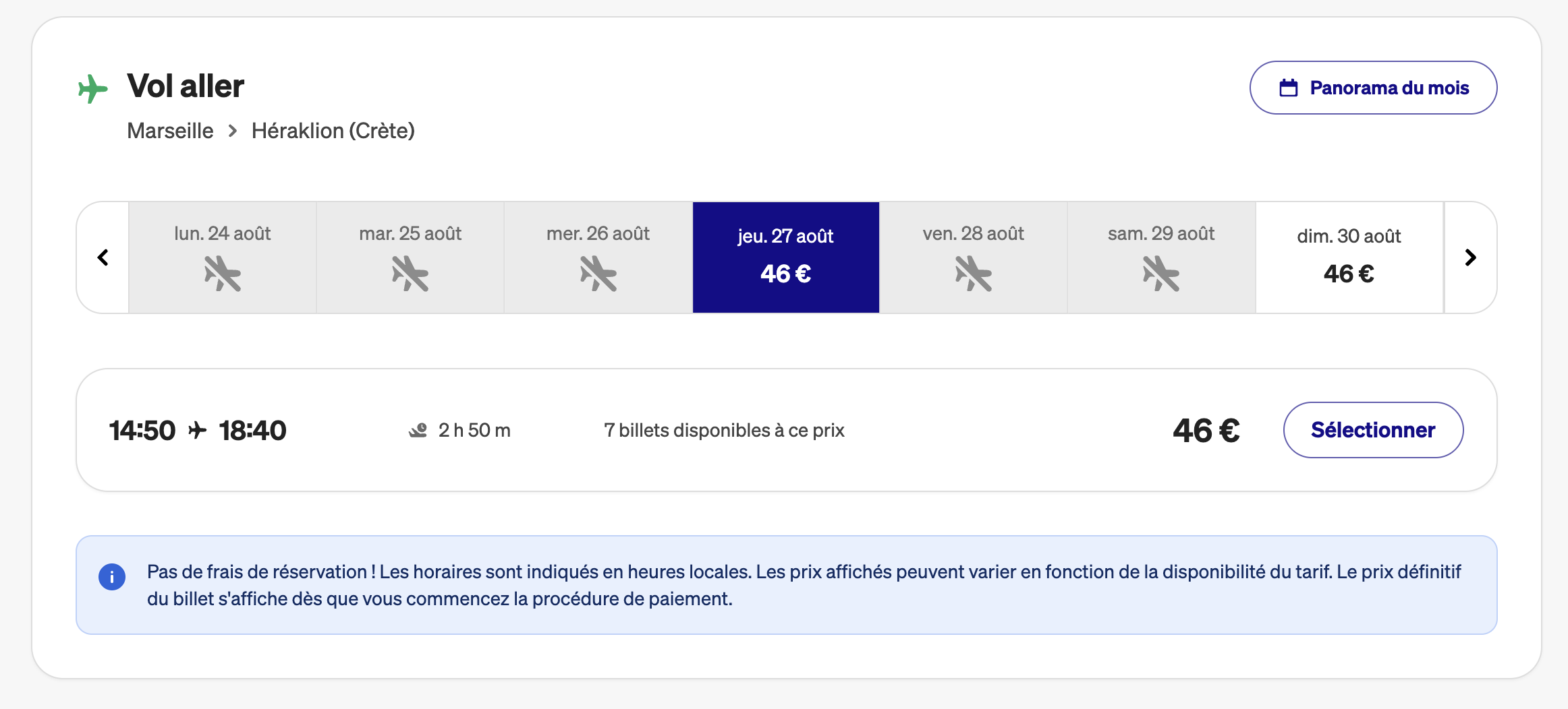 À noter : les prix sont corrects au moment de la publication, sur la base des exemples de dates fournis, et sont soumis à des fluctuations, en fonction des disponibilités.