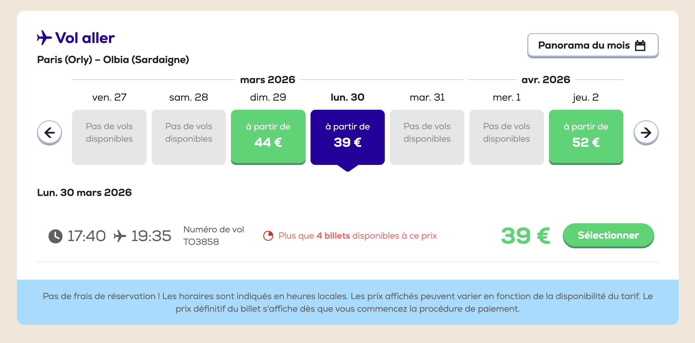 A noter : les prix sont corrects au moment de la publication, sur la base des exemples de dates fournis, et sont soumis à des fluctuations, en fonction des disponibilités.