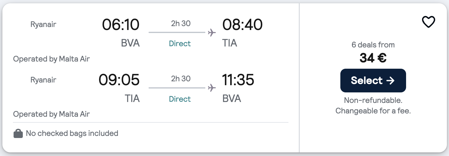 Pour vous permettre d'ajouter l'Albanie à votre liste de voyages, on vous a trouvé plusieurs vols A/R directs dès 34€ !