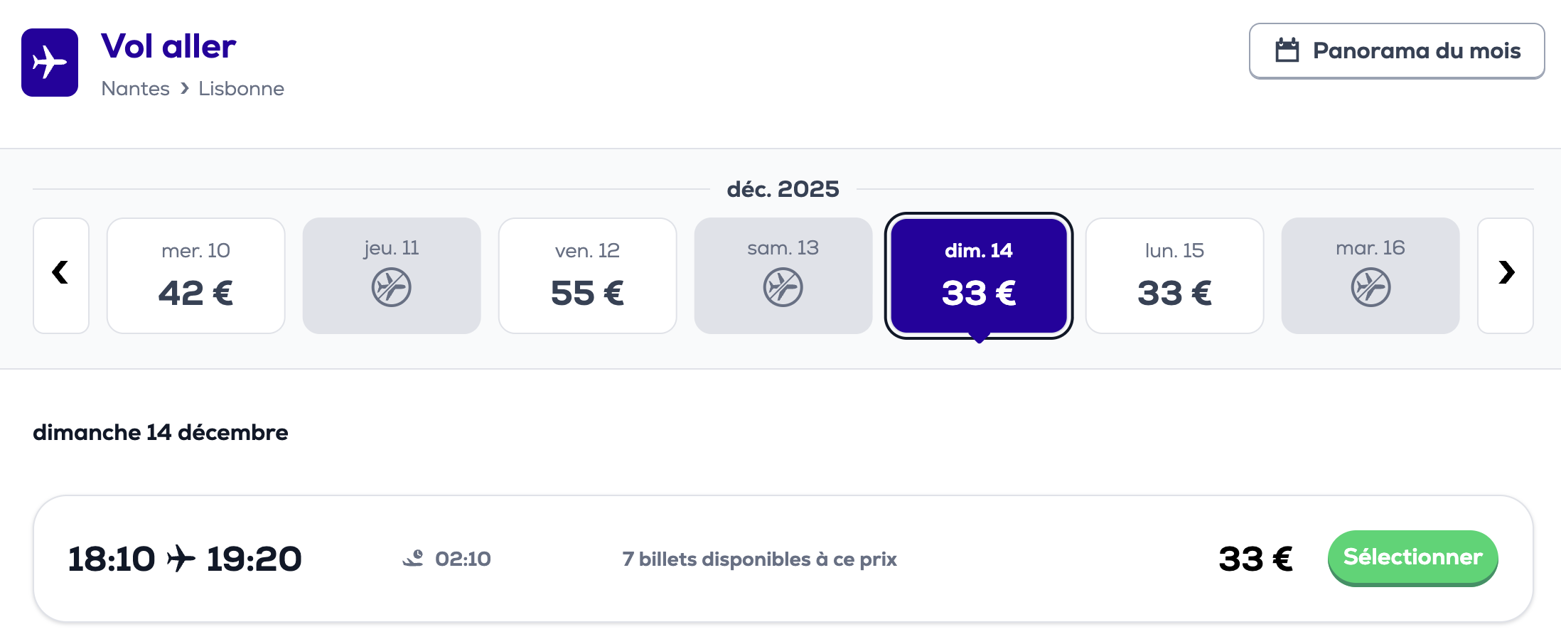 A noter : les prix sont corrects au moment de la publication, sur la base des exemples de dates fournis, et sont soumis à des fluctuations, en fonction des disponibilités.