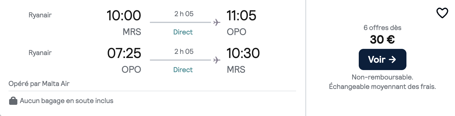 Exemple de vols depuis Marseille du 17 au 21 octobre 2025 :