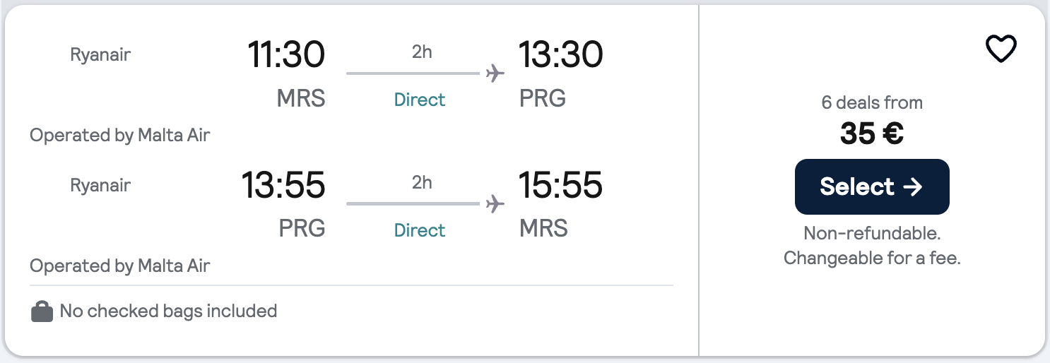 Exemple de vols depuis Marseille du 15 au 22 novembre 2025 :