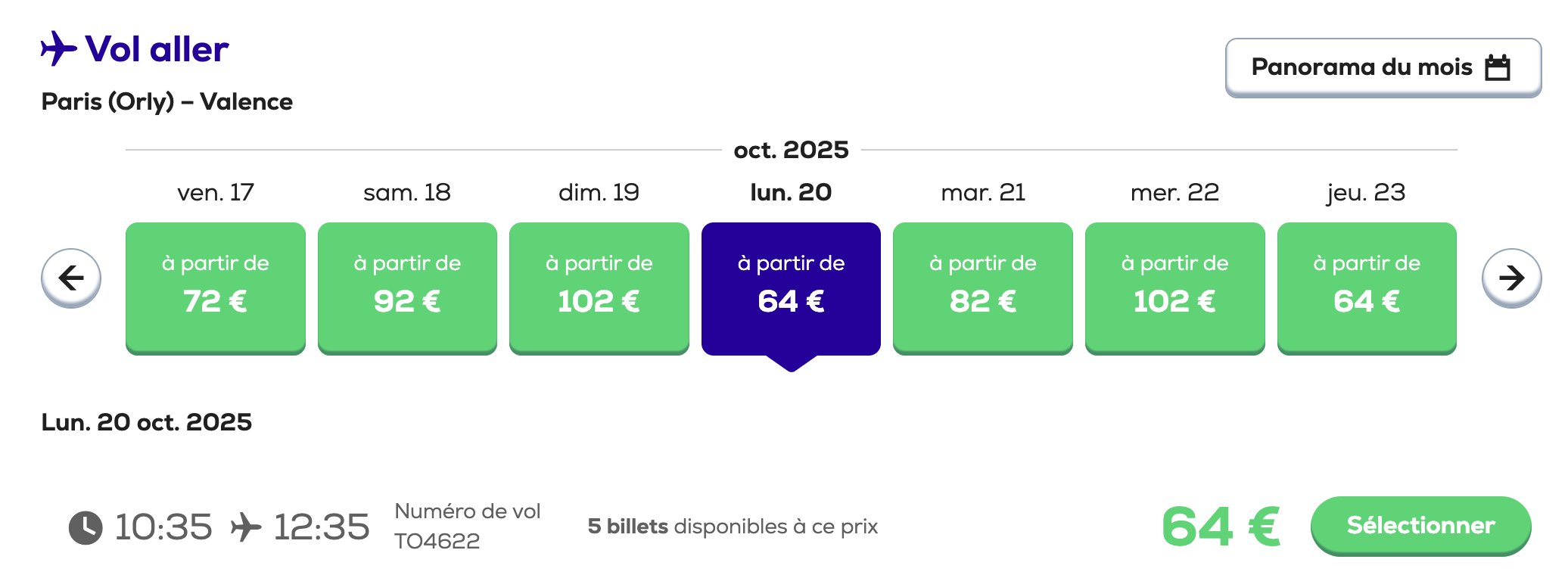 À noter : les prix sont corrects au moment de la publication, sur la base des exemples de dates fournis, et sont soumis à des fluctuations, en fonction des disponibilités.